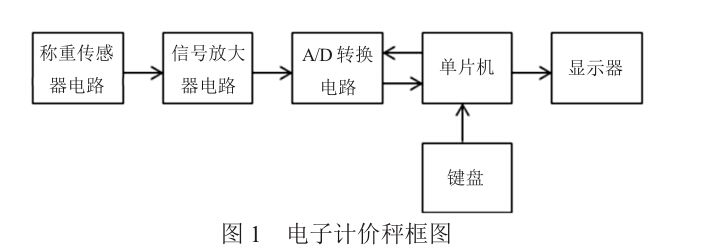 一般电子计价秤均由称重传感器信号电路、信号放大器电路、A/D转换电路(包括模拟放大、滤波(有些是集成于A/D转换器内部)、A/D转换 器)、单片机、键盘、数字显示器及稳压电路等组 成,如图1所示。