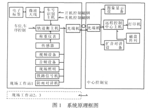 通过对静态轨道衡和动态轨道衡工作方式的对比,找出实现静态轨道衡远 程控制无人值守称量的技术关键,必须首先解决好远程端静态轨道衡的车号、车序、列车行 进方向的读取和判别。与此同时,配合必要的铁路信号,指挥列车的行进和倒退,完成现场的静态轨道衡自动检斤工作;系统集成了视频、铁路车号自动识别、称重、工业对讲、光纤 通信和计算机网络技术,较好的实现了四台静态轨道衡由一个中心控制室控制的功能,使系 统技术先进、人力资源优化。