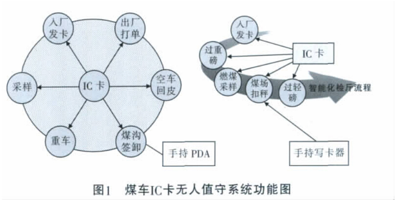 1.汽车煤车无人值守称重流程 阳城电厂无人值守系统依靠IC卡系统依次实现各 个环节的功能:下达煤入厂计划→汽车煤入厂→刷卡、 收票、发进厂卡→刷卡采样^刷卡称重→卸车后刷卡签收4刷卡空车回皮4交卡、领单出厂(见图1).