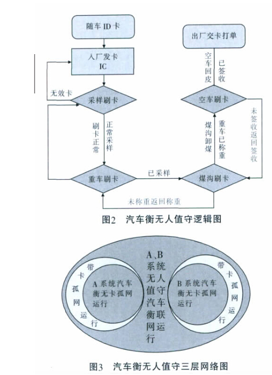 (3)当发卡系统出现故障时,汽车衡完全选择孤网 运行,通过本地服务器进行数据处理。此时,运煤车辆 凭借随车ID卡进行人工过秤,并在本地打印出厂票据。