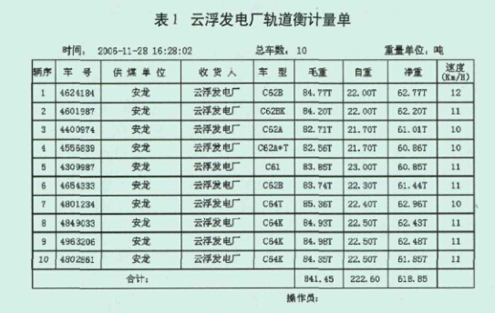 轨道衡仪表的计量数据,并与车号数据自动对位,自动生 成生产要求的报表,可进行汇总、查询、打印、统计等。