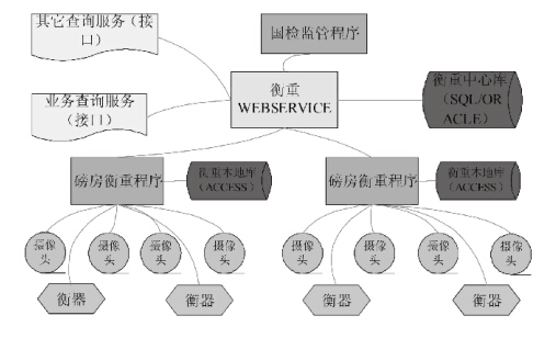 根据现场衡重业务的需求情况和国检监管的要求,本着力求功能完 善、操作简便、规范标准的原则,我们建立了相配套的衡重管理系统,包 括:磅房衡重系统和国检监管系统。客户端通过Web Service组件访问中 心数据库,同时Web Service组件提供接口给企业业务系统及其它查询服 务。增加了衡重本地数据库以支持断网模式。