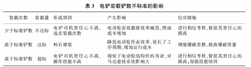 电动轮装车质董的控制和监督一直是生产管理 的重点,利用称重系统数据可以方便的对某台车在 某一时段的装车质量进行圈表分析,利用分析结果 可以对装车质焉不达标的驾驶员进行教育,提高其 成本着对相对的电铲司机的操作技能提高:提出 指导。表3列出了装载次数对电动轮使用寿命、运 行成本的影响。