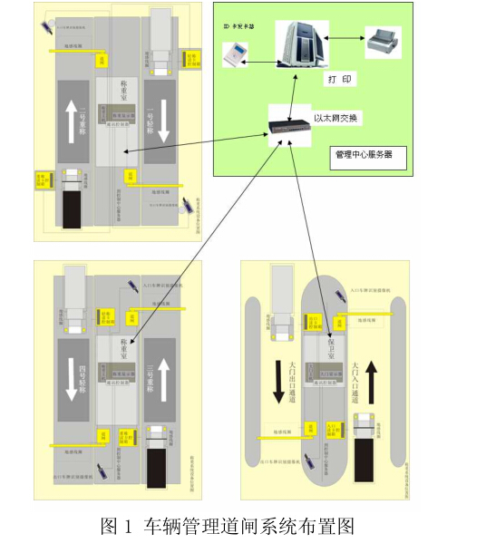 本系统科学、简单、成熟可靠,并己在许多电厂得到验证,遏 制住了煤炭称重作弊行为,使电厂在煤炭称重环节上免受经济损失, 提高了电厂经济效益。煤场车辆管理道闸系统布置,见图1:车辆 管理道闸系统布置图。