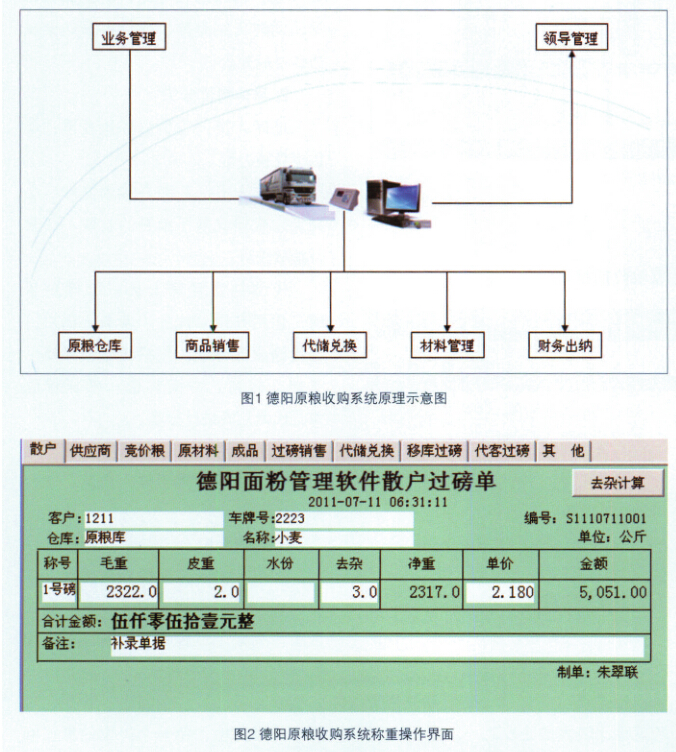 原粮收购是粮油加工企业最重要的环节,也是最不容易操控、最容易出现问题的环节。其工作好 坏,直接关系到企业的生存和发展。本文介绍的原粮收购管理系统,是德阳面粉加工企业管理系统的一 部分,将地磅直接与计算机连接,通过软件的智能化判断和处理,全面提高原粮收购工作质量,杜绝或 减少工作差错,降低企业损失。