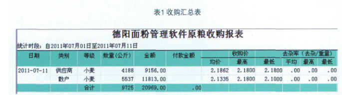 ⑥自动生成不同层次、不同视角的 原粮收购统计表,供不同人员使用。