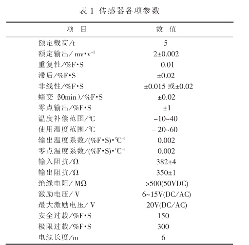 秤体传感器选用4只梅特勒-托利多衡器有限 公司生产的精度为0.015级的压力传感器,该传感器 各项参数见表1。