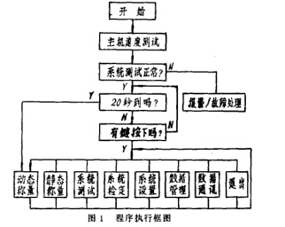 程序启动后,首先调用系统检测模块进行 系统状态测试,包括接口板、A/D转换、各模拟 通道等测试。若出现故障,系统将立刻报告故 障原因并报警。