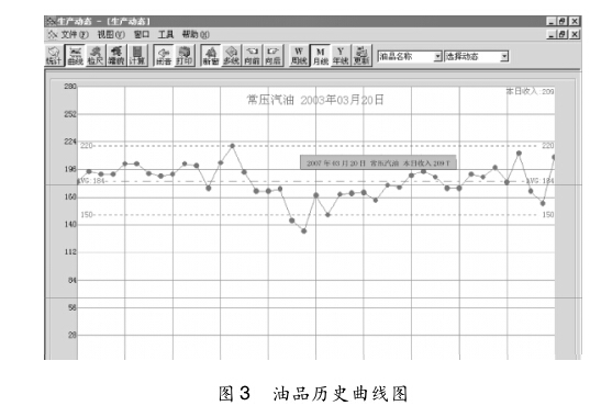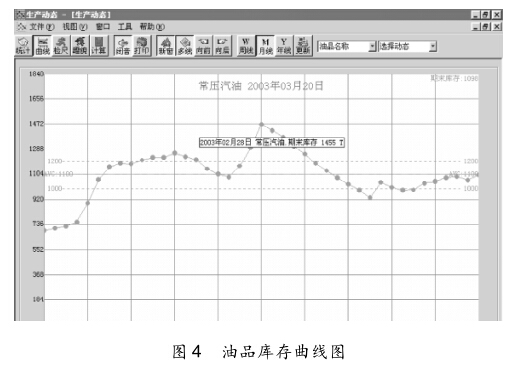 ④历史曲线:为了便于总厂有关科室和总厂领 导查看某一(些)油品的生产动态和趋势,历史曲线 可以直观地描绘出进出油品一站的各类油品动态情 况,并以不同的颜色加以标识。